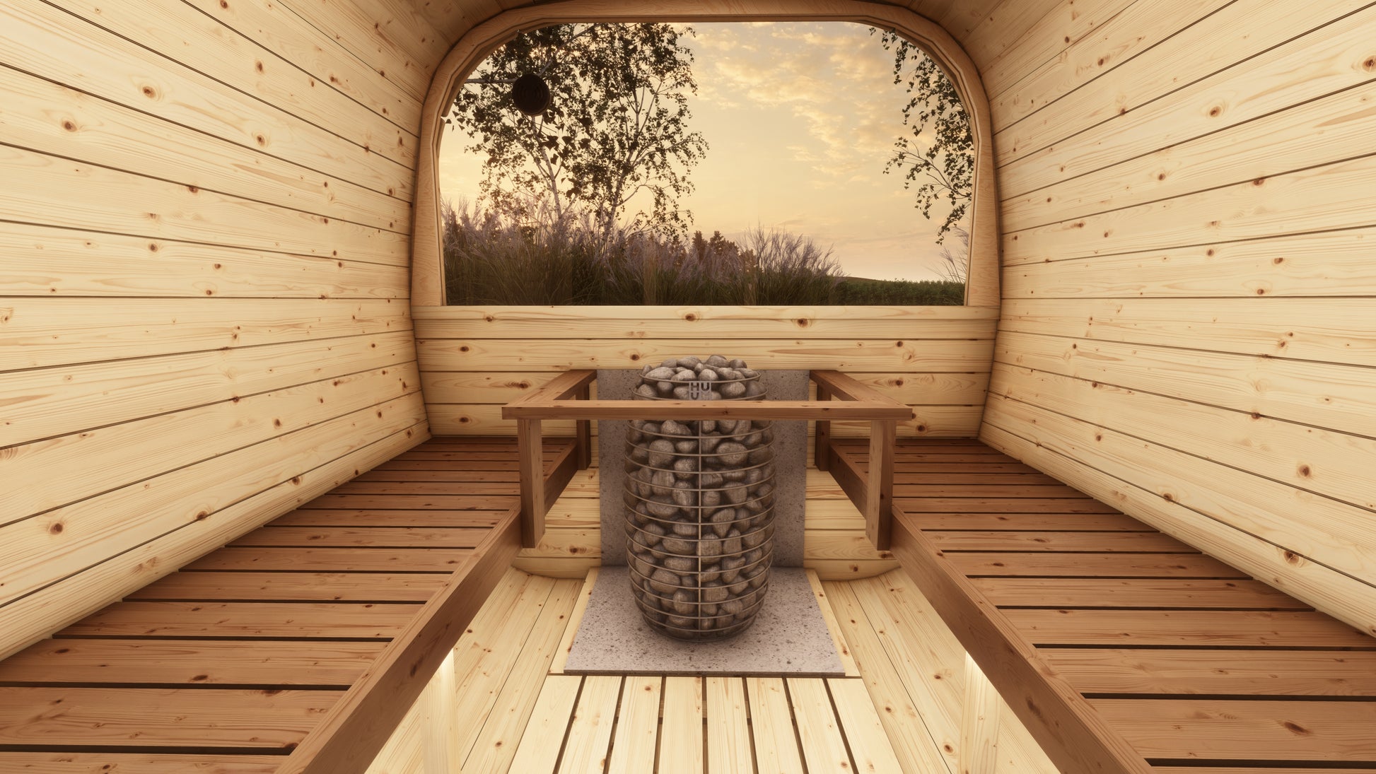 Wnętrze wyposażone jest w ławy i oparcia, co umożliwia komfortowe użytkowanie dla 4–6 osób.